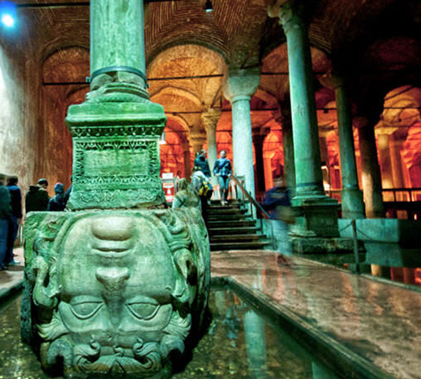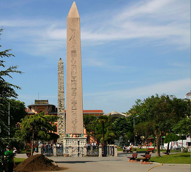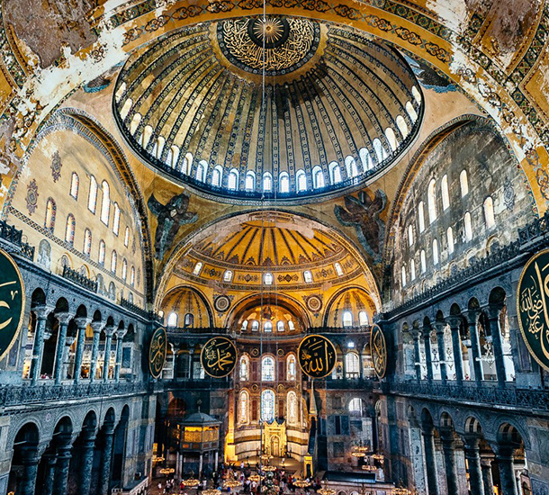 A popular tourist site, the Sultan Ahmed Mosque continues to function as a mosque today; men still kneel in prayer on the mosque's lush red carpet after the call to prayer. The Blue Mosque, as it is popularly known, was constructed between 1609 and 1616 during the rule of Ahmed I. Its Külliye contains Ahmed's tomb, a madrasah and a hospice. Hand-painted blue tiles adorn the mosque’s interior walls, and at night the mosque is bathed in blue as lights frame the mosque’s five main domes, six minarets and eight secondary domes.[2] It sits next to the Hagia Sophia, another popular tourist site.