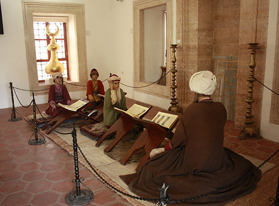 Basic education outside the palace started in the home with an emphasis on religion and morality. A boy would then go on to study at a medrese, a school usually attached to a mosque.